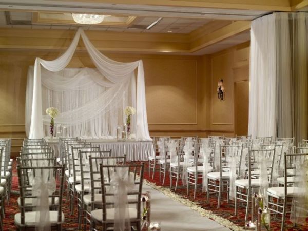 Our Backdrops range anywhere from 8’ to 32’ tall and even higher. We offer many different looks and colors which can be enhanced by elegantly draped swags, iridescent beading and lighting. Our Wedding Backdrops are often used for the Ceremony, Bride & Groom’s Table and the Cake Table. These settings are where most of the wedding photos will be taken, so you want them to be extra elegant.