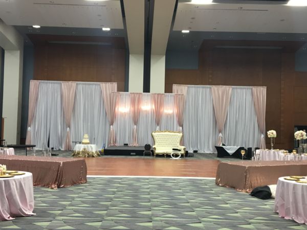 You can add lighting to our custom Designer Backdrops that gently fades to different colors and/or moves to the beat of your favorite music. Backdrops can be created with the inspiration of theme, color or tradition. We specialize in thinking outside the box.