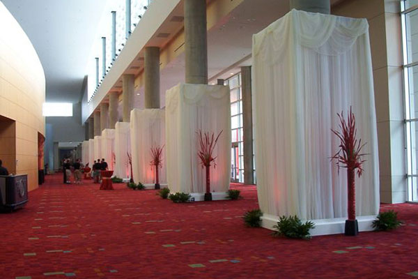 Our backdrops can go as high as requested. This allows us to be as creative as the client wishes to take it. With everything from confetti falling from high above to flashing lights to oversized corporate 3D logos to the elegance of iridescent beading and chandeliers, we take backdrops seriously and to the next level.